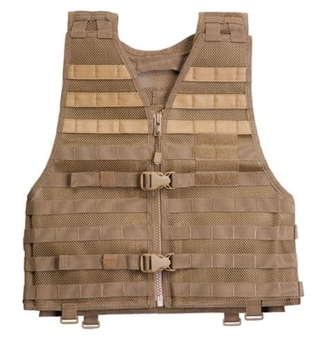 5 .11 VTAC LBE Vest - The ultimate tactical platform, designed by experienced special forces operator Kyle Lamb. The LBE Vest, field tested by VTAC is made from a stiffened mesh that provides the necessary structure for all your gear, yet allows air in for ventilation and breathability. The LBE Vest has our hidden document pockets and is fully compatible with our pouches plus standard molle gear. A grab handle is located on the interior of the vest, not visible to an outsider, but there if needed. The LBE Vest is adjustable in girth and length and is available in M/L and XL sizes. Imported.