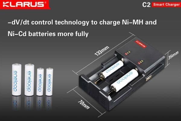 The Klarus C2 dual cell charger is capable of charging almost all rechargeable batteries.